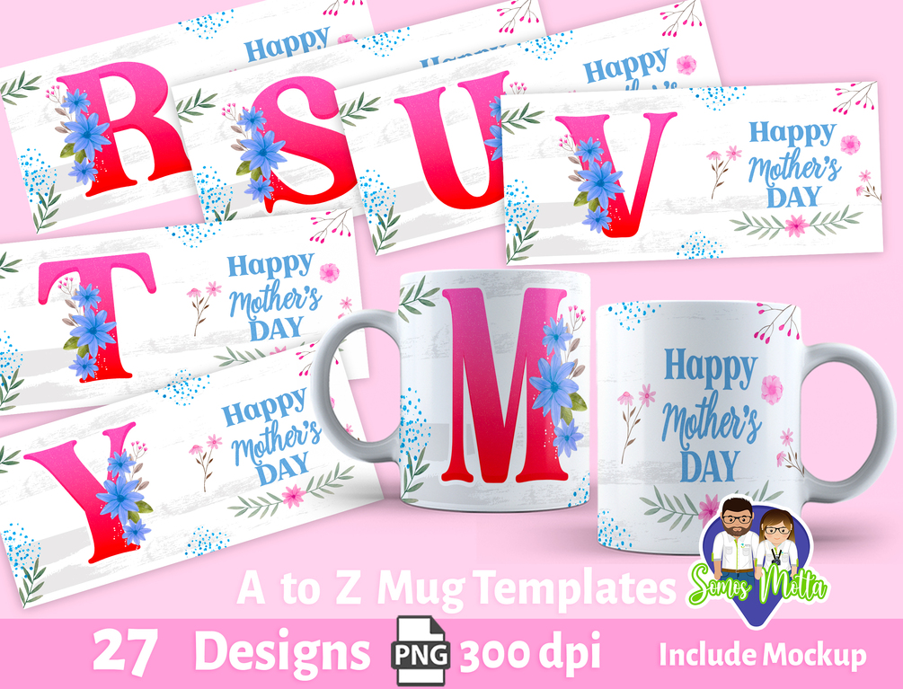 Personalized Mother's Day Mug Alphabet Designs | Instant Digital Download | Initial PNGs | Mother's Day Printables | Digital Prints